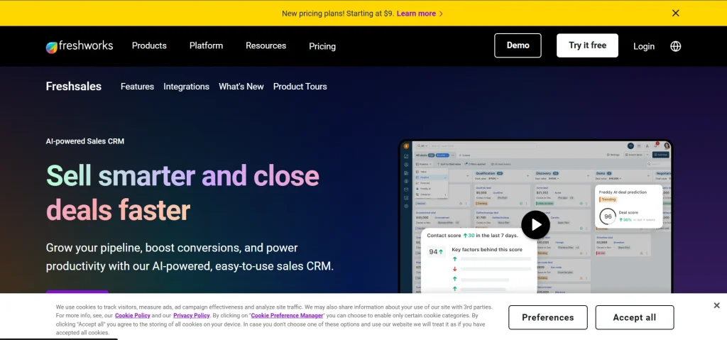 Freshsales feels easy from the first login. It’s built for growing teams. The platform combines sales automation with built-in communication tools. You can manage leads, track conversations, and move deals forward in one place.