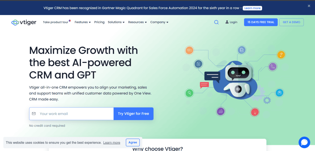 Vtiger CRM is a free, open-source tool that helps businesses manage leads, track sales pipelines, and stay on top of customer interactions. The free plan allows up to ten users, making it one of the more generous options when it comes to team size. It includes contact management, deal tracking, and task automation, helping businesses streamline their sales process.