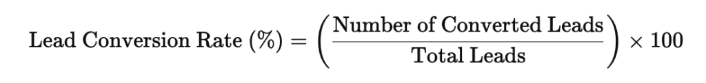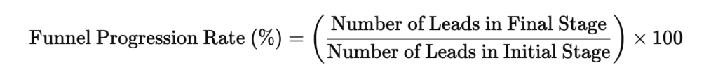 This metric measures how leads move through the sales funnel and identifies challenges. To calculate, use this formula: