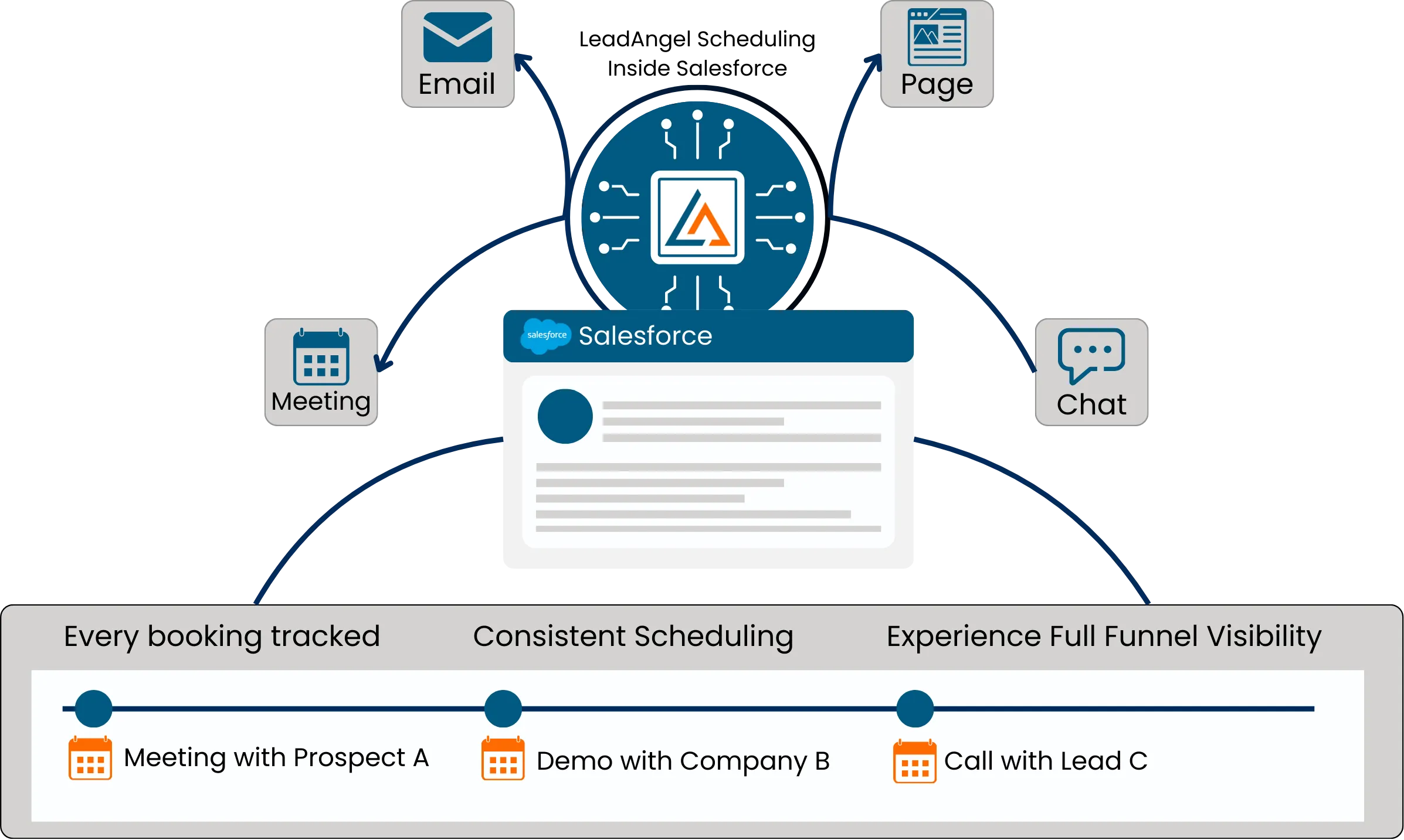 Salesforce’s native scheduling capabilities are often limited to specific touchpoints. Teams embed scheduling links across lead handoffs, emails, landing pages, and chat. Every booking stays connected to Salesforce, ensuring consistent scheduling experiences and full visibility across the funnel.
