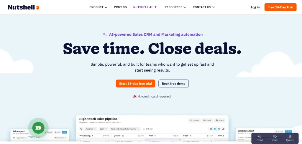 It offers deal tracking, built-in calling, and email automation to keep sales moving. AI-powered lead scoring helps teams focus on the best prospects and close deals faster.