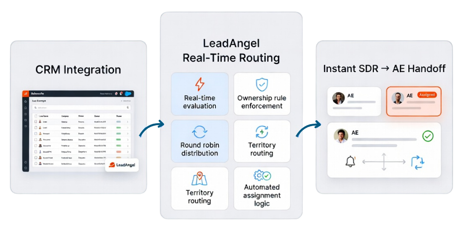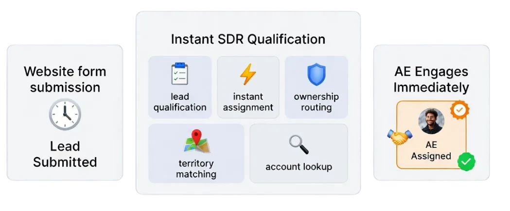 Native Salesforce integration enforces ownership rules, supports real-time round robin assignment, and enables instant SDR-to-AE lead handoffs directly inside Salesforce workflows.